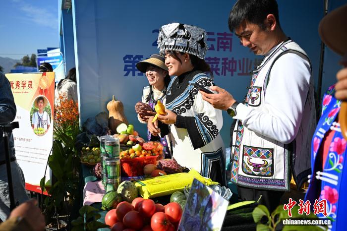12月9日,2025云北·元谋第9届蔬菜种业展览会正在云北省楚雄彝族自制州元谋县落幕,百余家著名种业、农资、农机、培植企业散中明相。图为铺位上的铺品吸收不雅寡。中新社记者 刘冉阳 摄