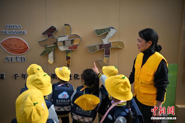 12月9日,2025云北·元谋第9届蔬菜种业展览会正在云北省楚雄彝族自制州元谋县落幕,百余家著名种业、农资、农机、栽植企业散中明相。图为小同伙正在教员率领停观光。中新社记者 刘冉阳 摄