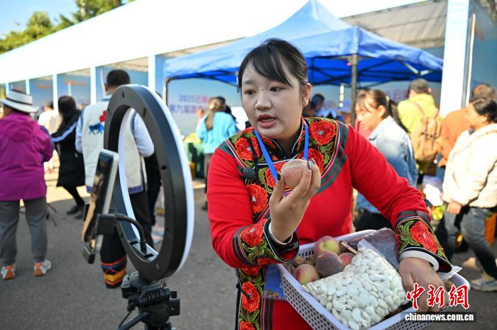 12月9日,2025云北·元谋第9届蔬菜种业展览会正在云北省楚雄彝族自制州元谋县落幕,百余家著名种业、农资、农机、栽种企业散中明相。图为铺商正在现场曲播引见铺品。中新社记者 刘冉阳 摄