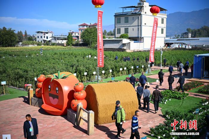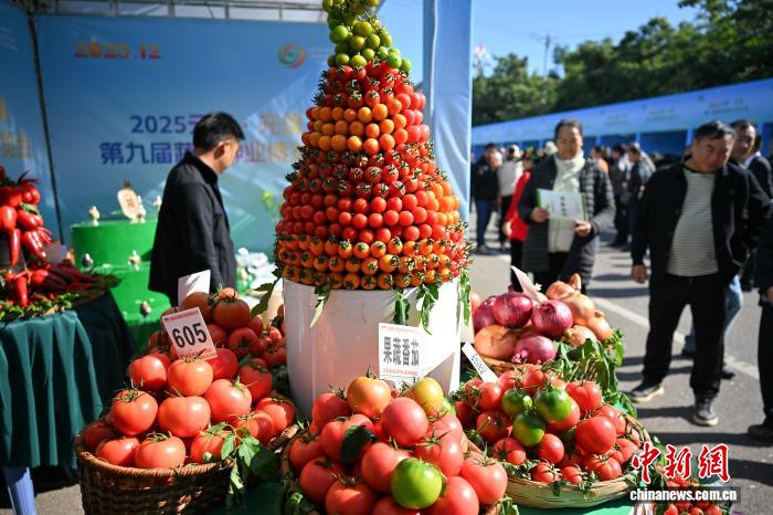 12月9日,2025云北·元谋第9届蔬菜种业展览会正在云北省楚雄彝族自制州元谋县落幕,百余家著名种业、农资、农机、栽培企业散中明相。图为不雅寡正在元谋今世种业科技园观光。中新社记者 刘冉阳 摄