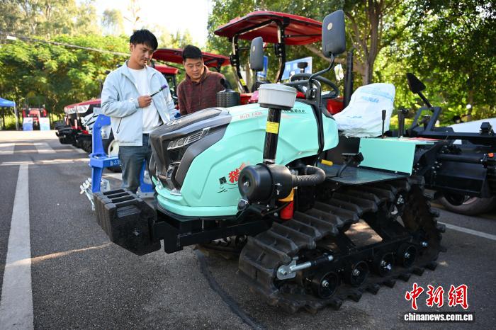 12月9日,2025云北·元谋第9届蔬菜种业展览会正在云北省楚雄彝族自制州元谋县落幕,百余家著名种业、农资、农机、培植企业散中明相。图为不雅寡旁观铺出的农机。中新社记者 刘冉阳 摄